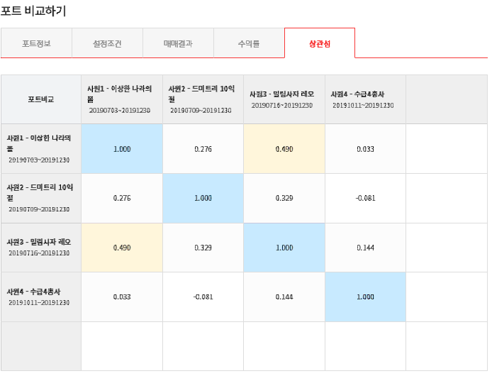 여러 개의 전략을 돌릴 때, 가장 중요한 요소는 전략들간의 상관성일것입니다.