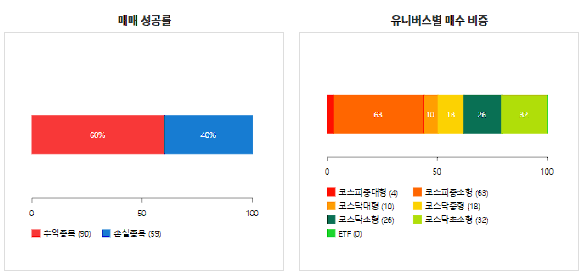 유니버스는 코스피보다는 코스닥 중심이네요. 그중에서도 코스닥 소형+초소형이 50% 이상이네요.